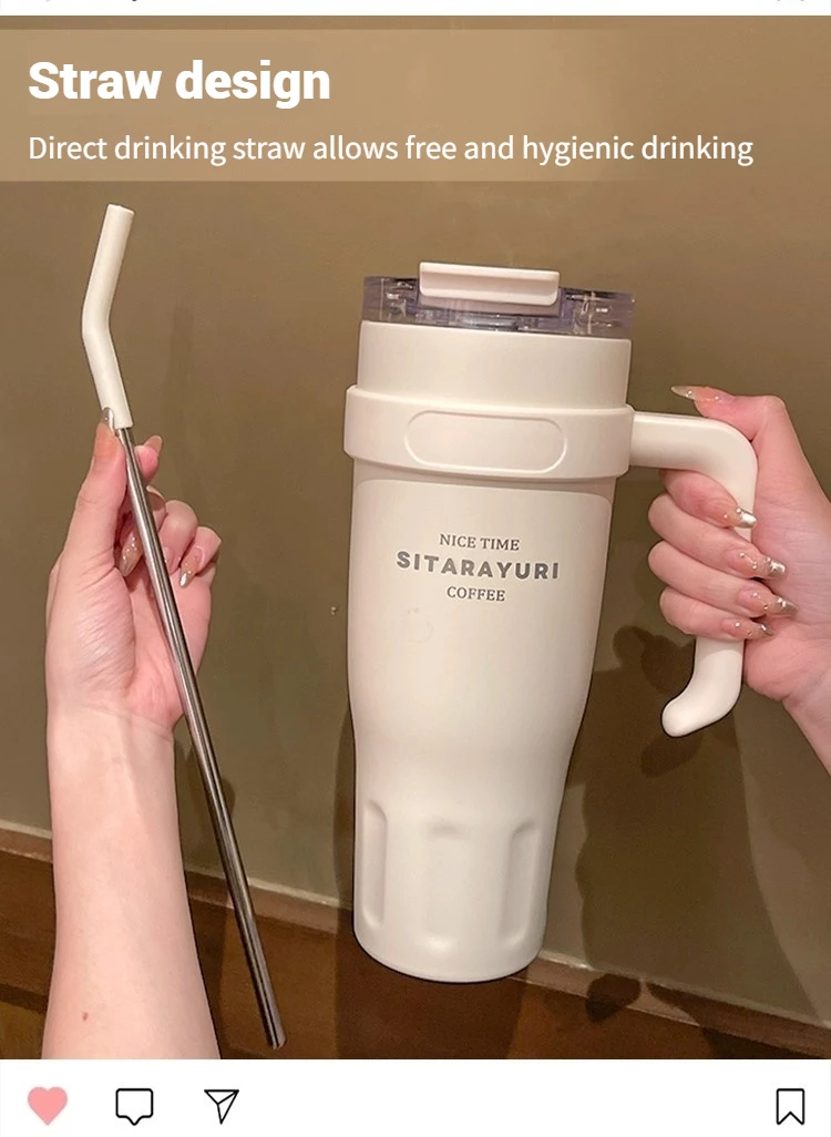 大容量タンブラー 1100ml - ハンドル付きストロー式