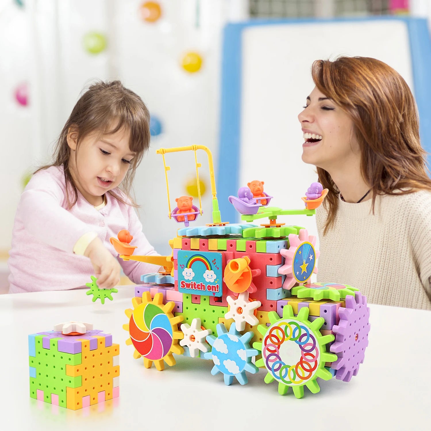 お子様の創造力と論理的思考を育む、カラフルな歯車ブロックの知育玩具です。様々な色と形の歯車を組み合わせて、動く仕組みを学べます。